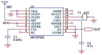 MICRF002为完整的单片超外差接收电路,基本实现了“天线输入”之后“数据直接输出”,接收距离一般为200米。